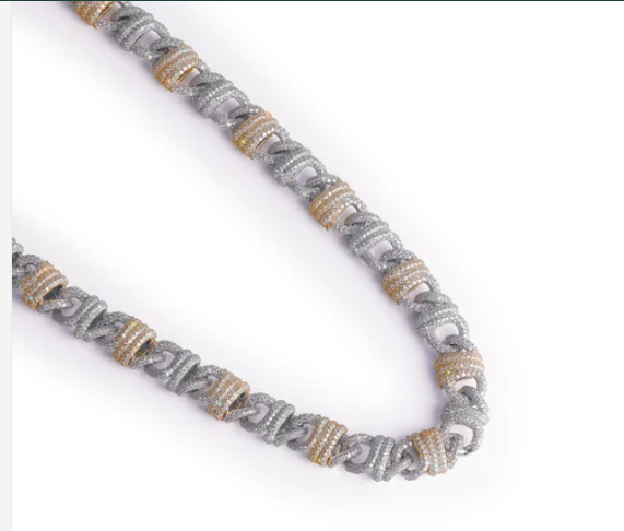 Sterling Silver VVS1 Moissanite Hip Hop Style Charms Necklace Passes Diamond Two-Tone Elegance: Diamond Pave Cuban Link Chain