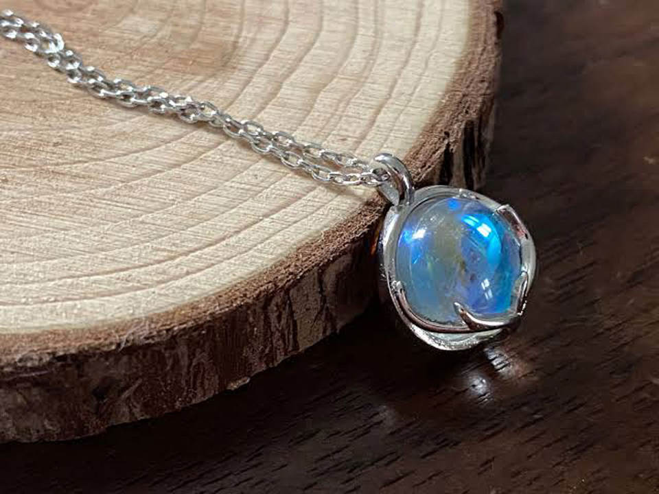 Sterling Silver Vintage Pendant Necklace with Moonstone Handmade 10X14MM Bezel Set Star Shape Wedding Jewelry Gift