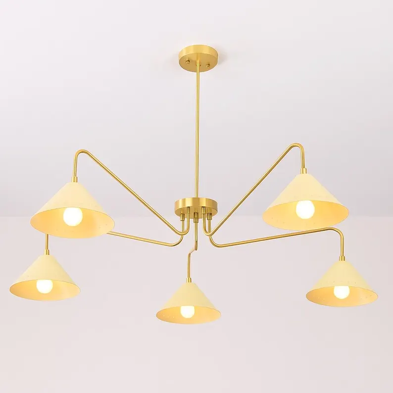 Stilnovo Style 1950s Brass Pendant Light Six Arm Mid Century Sputnik Chandelier Vintage Modern Elegant Ceiling Fixture