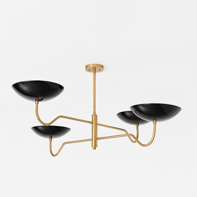 Stilnovo Style Brass Chandelier 4 Arm Mid Century Ceiling Fixture Vintage Modern Pendant Light Elegant Retro Design