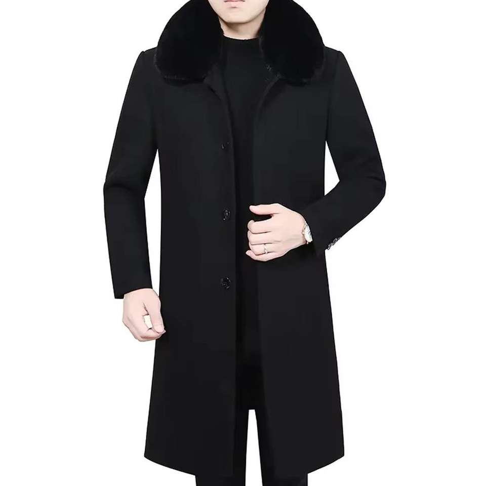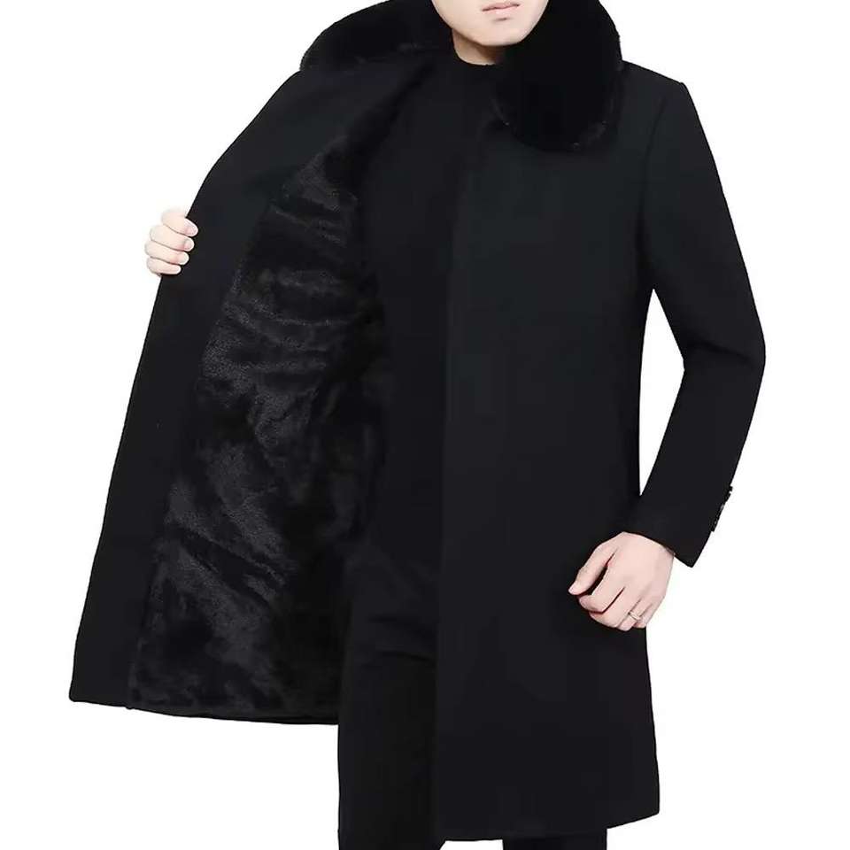 Stock Available Premium Quality Men's Genuine Leather Long Coat with Fake Fur Sheepskin Design-Factory Made Stock Available