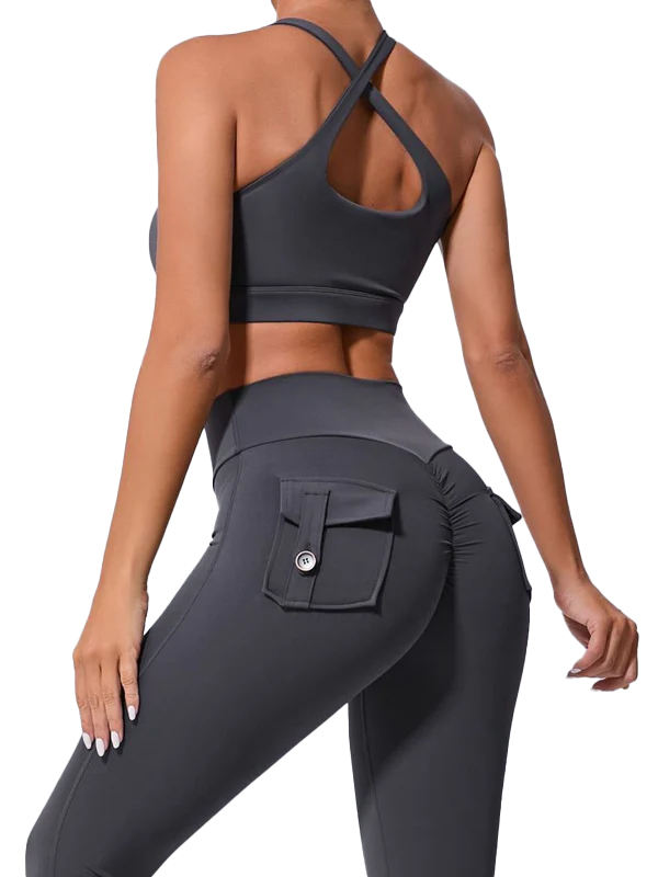 Stock Two-Piece Sports Yoga Suit Plus Size Rhinestone Solid Color Double-Sided Nylon Breathable Tight-Fit Elastic Waist Quick