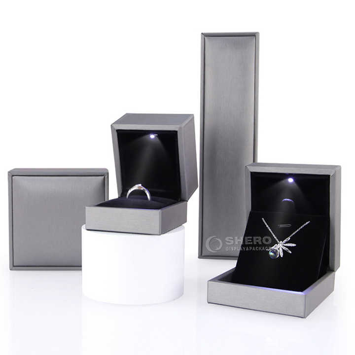 Stock Jewelry Box Set Paper Bag Luxury Black PU Leather Jewellery Ring Gift Package Box