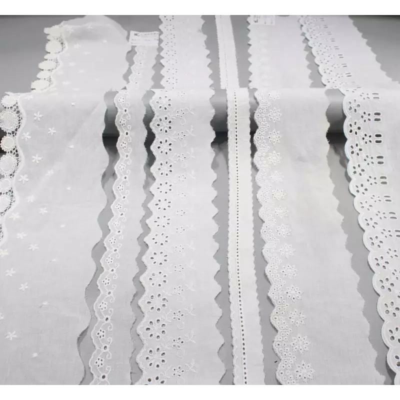 Stock Narrow Eyelet Cotton Lace Trimming Embroidery Pink 100% Cotton Lace Trim Fabric for Women Dress Sustainable Crocheted