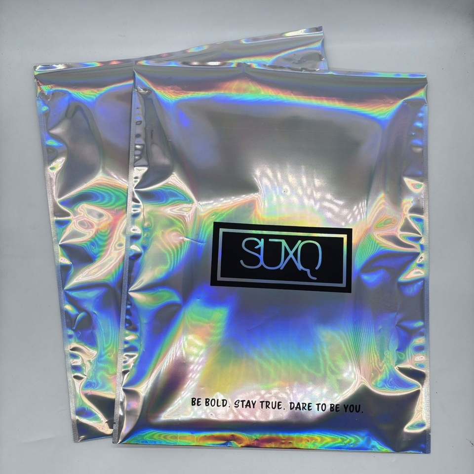 Stock Size Custom LOGO Holographic Mailer Glossy Aluminium Laser Shipping Mailer for Clothing Mailing Bags Small Medium Big