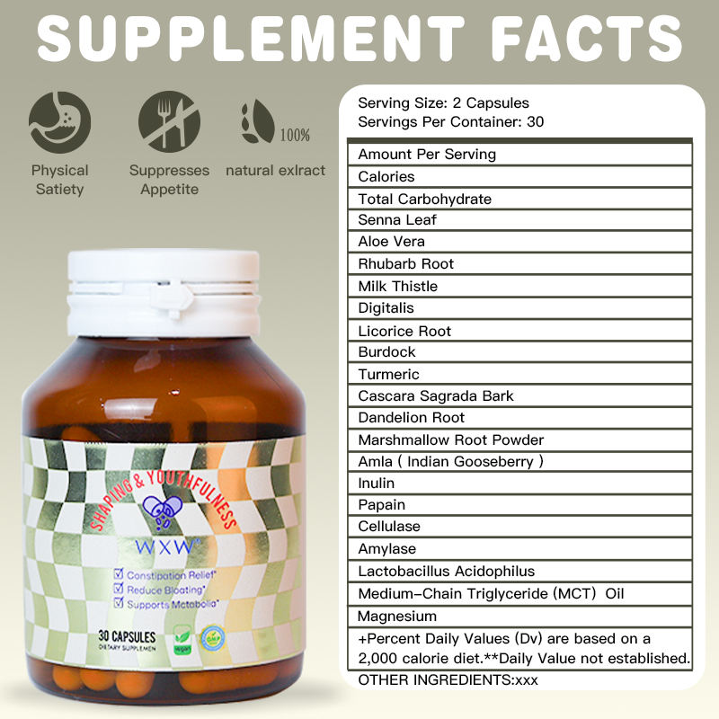 Stock WXW Detox Daily Cleanse Capsules Pills Natural Vegan Probiotics Digestive Cleanse & Detox Support Capsules