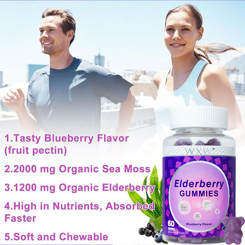 Stock WXW Elderberry Black Seed Oil Gummy Health Food Elderberry Gummies Sambucus Elderberry boost Immune Antioxidant Gummies