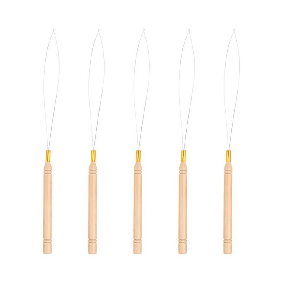 Stock Wholesale Beard Loop Threader Hair Extension Tools Wooden Knitting Hair Crochet Hair Weaving Micro Ring Loop Hook Needles