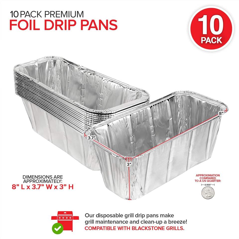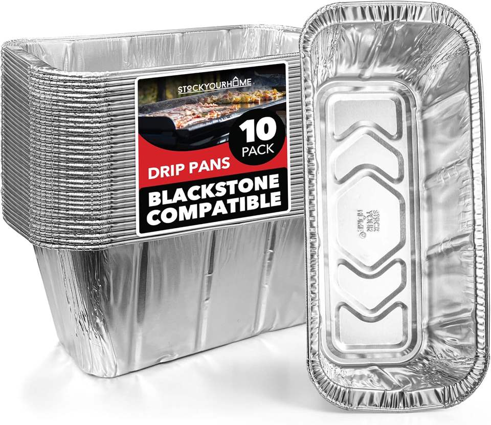 Stock Your Home Rectangle Aluminum Foil Grill Drip Pan (10 Pack)-Recyclable Food Grade Compatible Blackstone's BBQ Griddle