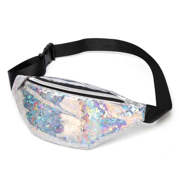 Stocking Laser Reflective Transparent Women Waist Bag Shiny PU Bag Fanny Pack