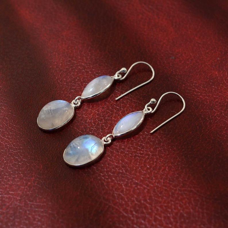 Stone Girls Earrings for Women Blue Fire Moonstone Gemstone Earrings 925 Solid Sterling Silver Dangle Silver Earrings Jewelry