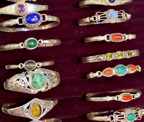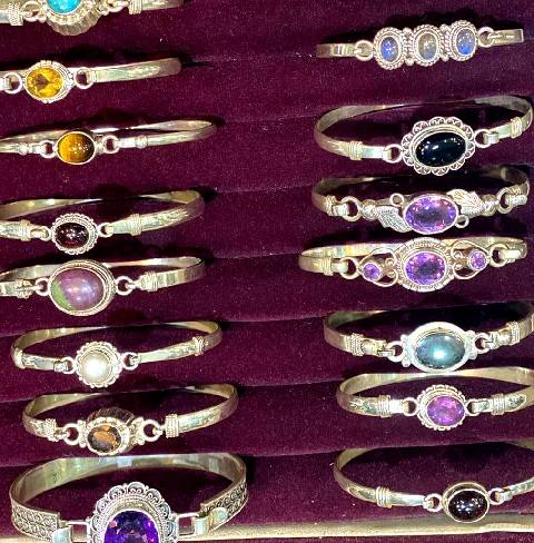 Stone Set Silver Bangles:Mix stone use Mix Design