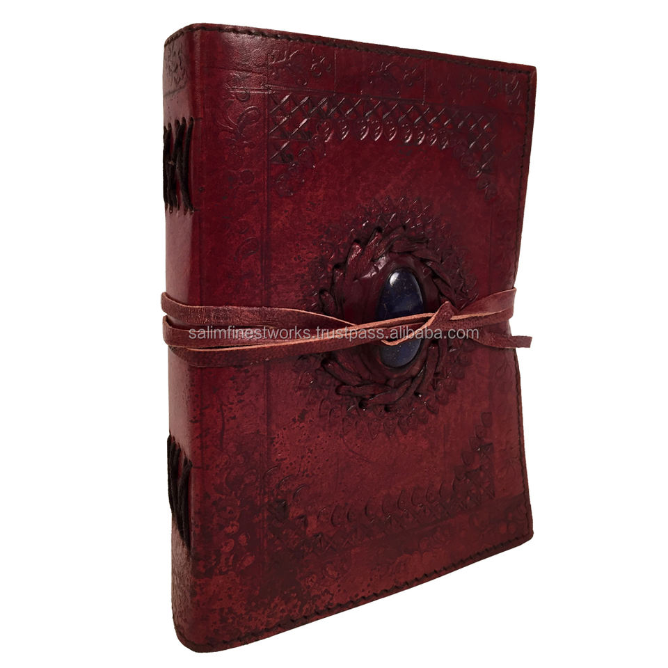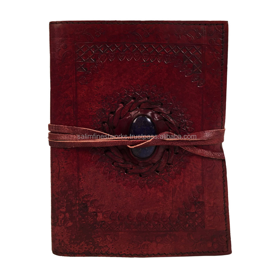 Stone Studded Vintage Genuine Leather Journal Handmade Diary Travel Blank Soft Cover Wrap Around Genuine Leather Strap Note Book