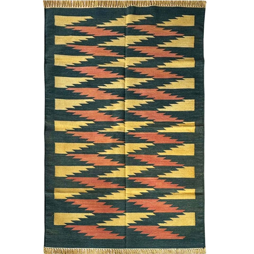 Stone Wash Handmade Indian Rug Carpet Dhurrie Mat Kilim Runner with Geometric Pattern for Bedroom or Living Room