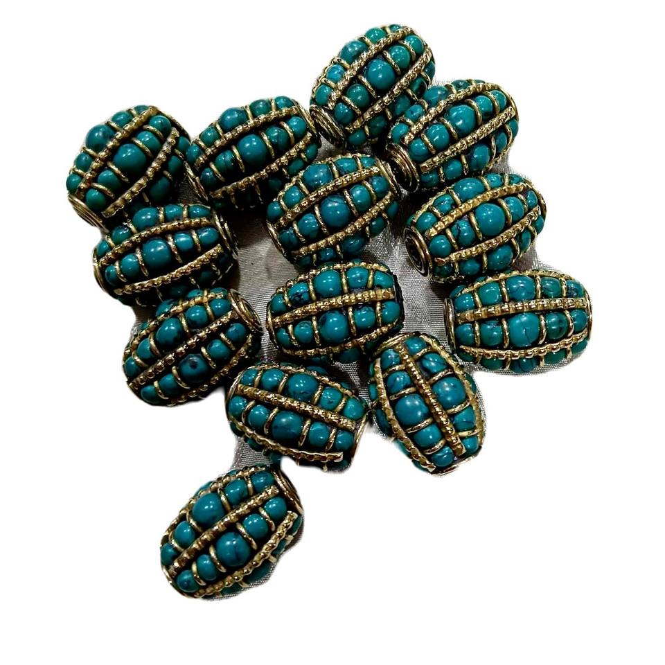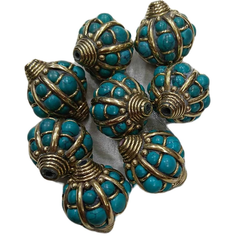 Flat beads are 1 inches diameter:Brass based with turquorise set
