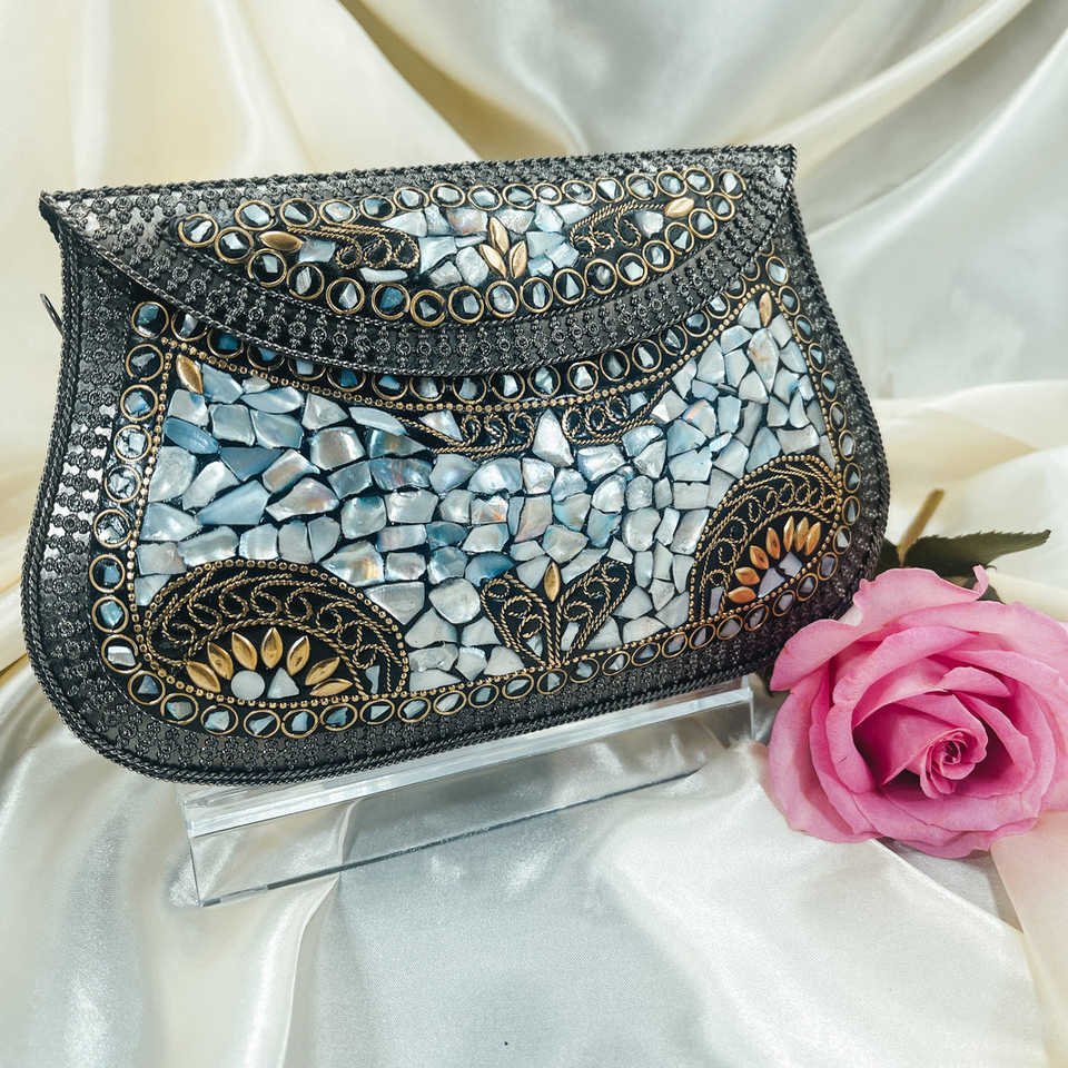 Stone design mosaic clutch purse Indian handmade bridal wedding bag for party ethnic handbag gifting clutch