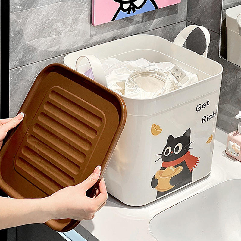 Storage Box Large Capacity Rectangle White With Sticker Get Rich Cat Design For Kids Bedroom Living Room Organizing Toys Snacks