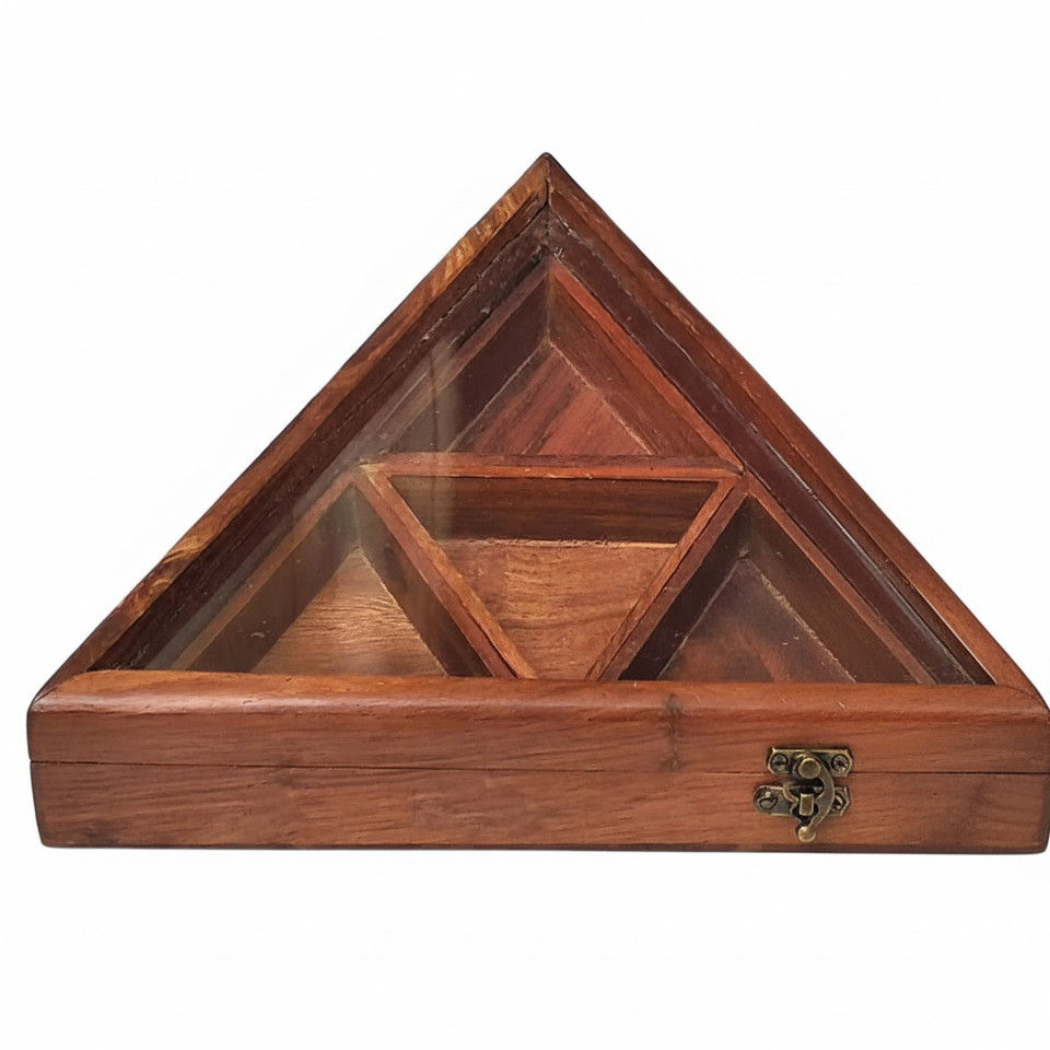 Storage Wooden Masala Box Premium Home Accessories Triangle Shape Spice Box 8 Inches 4 Compartment Box Dry Fruit Box With Glass