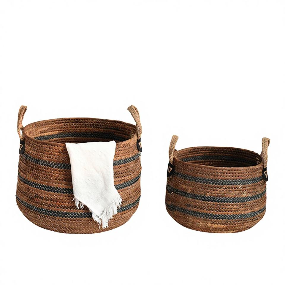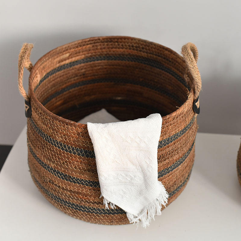 Qingqian Dark Coffee Rattan Banana Rope Weaving Large Capacity Storage Basket for Sundries Sorting Balcony Living Room Storage