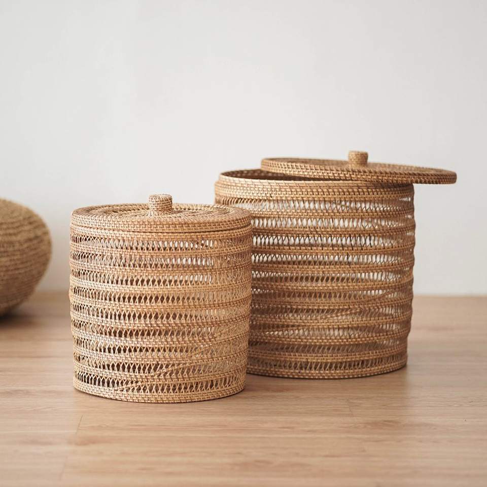 Storage lidded basket containers competitive price rattan bin hamper high quality container baskets