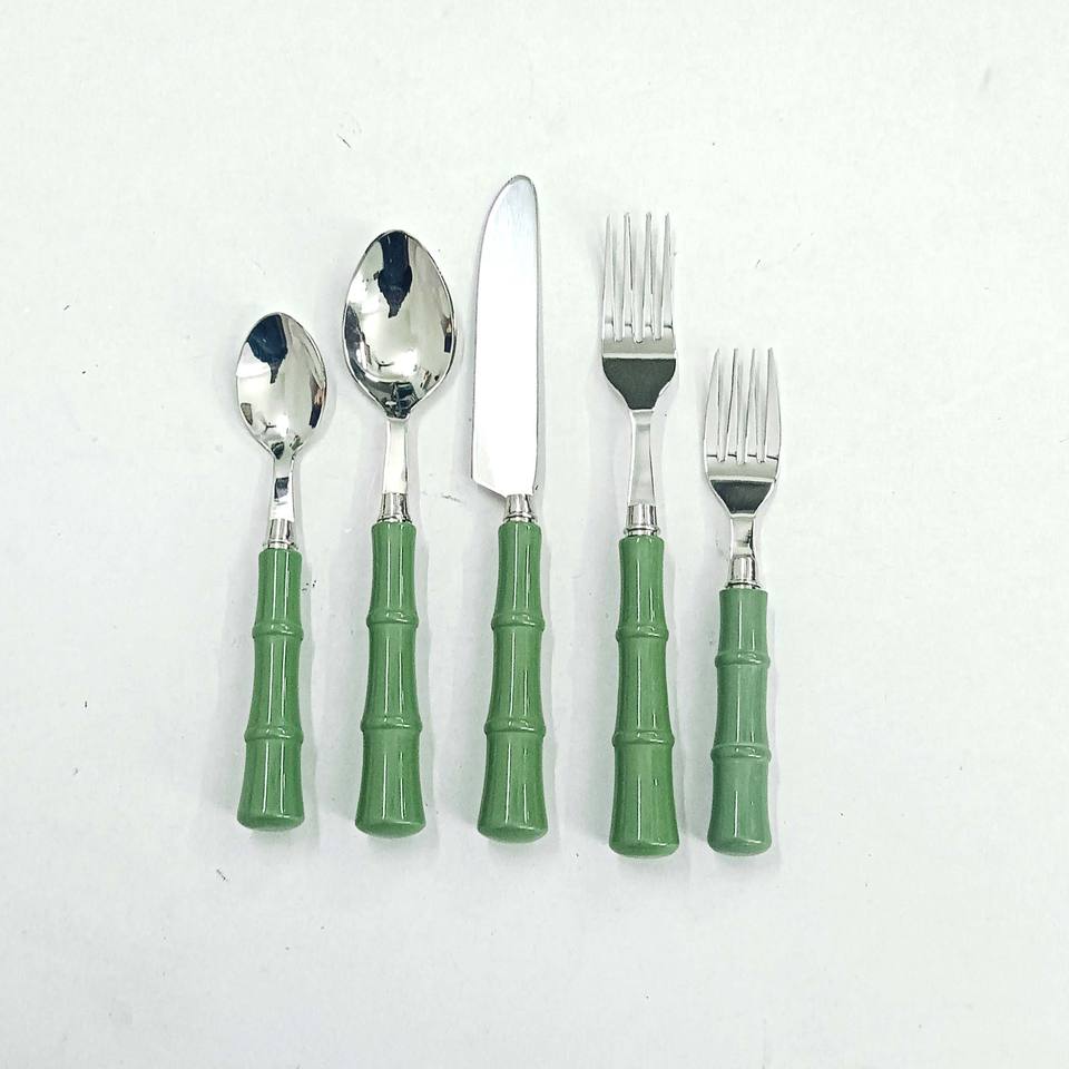 Story Telling Dinnerware Set Green Resin Bamboo Handle Cutlery Eating Experience With Customize LOGO Dinnerware Cutlery Set