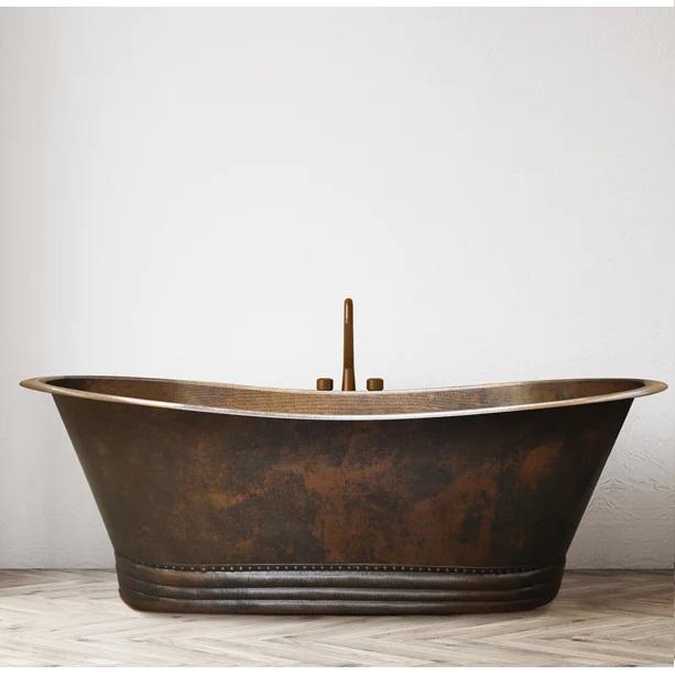 Straight Base Copper Shined Free Standing Double Slipper Elegant Luxury Hot Selling Handmade Copper Bath Tub at Cheap Prices