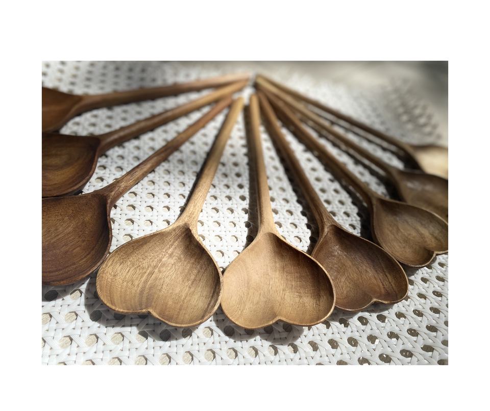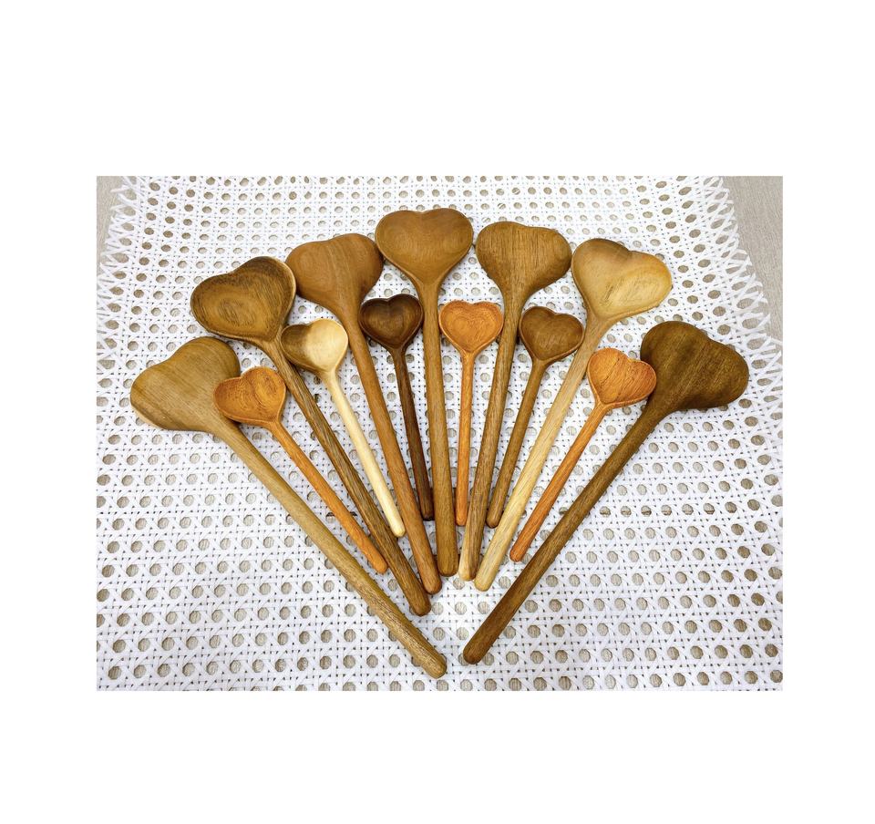 Straight Heart Wooden Spoon - Natural Timber Tableware Handmade, Vintage Serving Spoons, Crafted Eco Gift Set Kitchenware Home