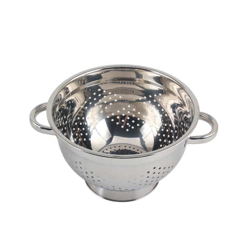 Strainer with Handle, Dishwasher Safe, Solid Base Mirror Polishing Self-draining Kitchen Colander