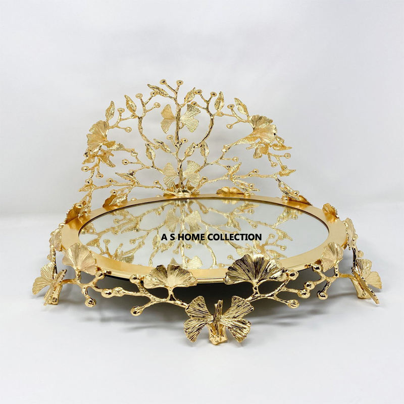 Stranded Design Sweets Serving Tray Handmade Metal Gold Color Chocolate Stand for Restaurant Tableware Usage