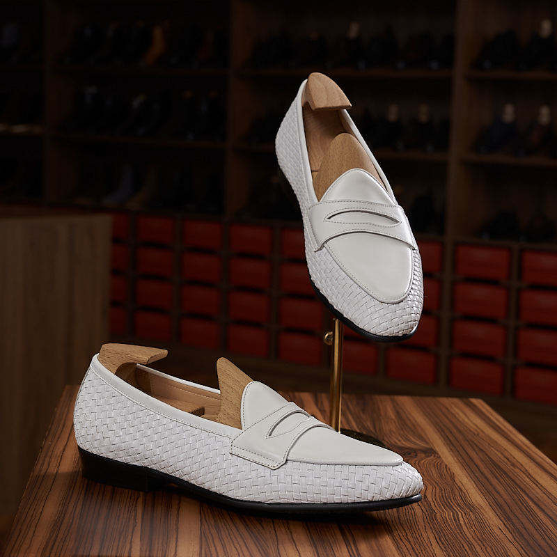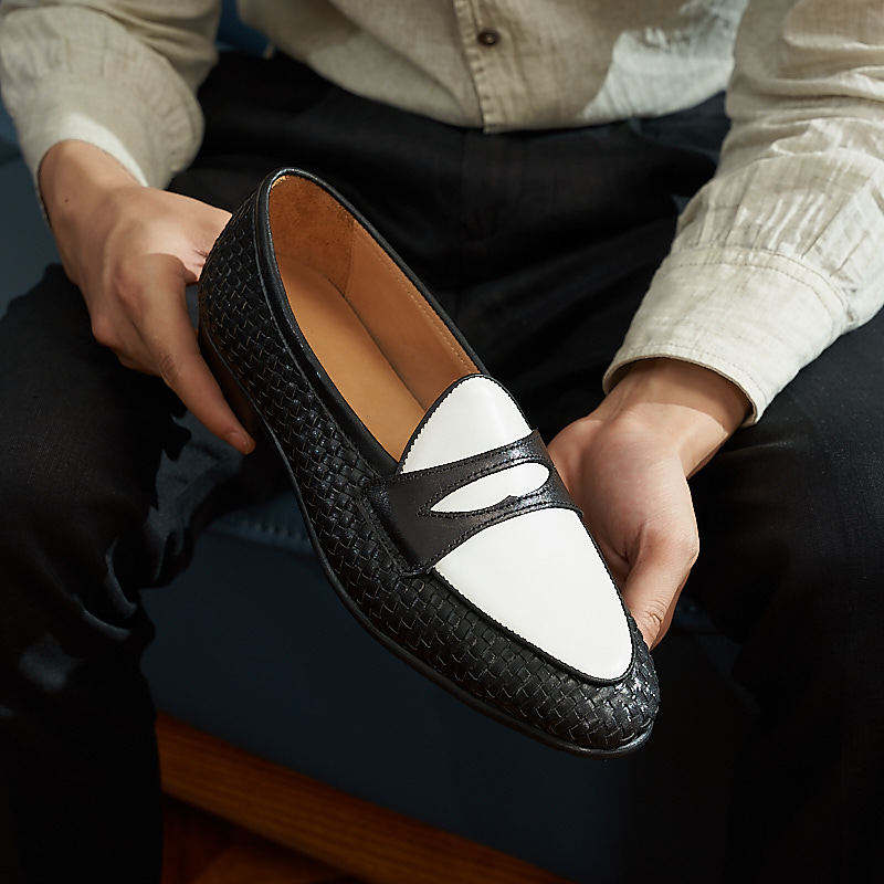 Strap rubber sole, breathable and lightweight. Suitable for handmade woven shoes with black and white color combination.