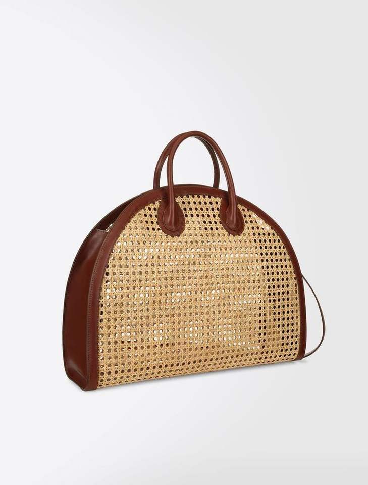 Straw Bag Small Tote Basket Bamboo Tote Beach Bag for Women Boho White Handbag With Leather Handle