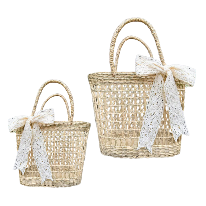Straw Bags and Seagrass Baskets From Vietnam SEAGRASS HANDBAG with Bow Valentine's Day Gift Baskets Straw Bag