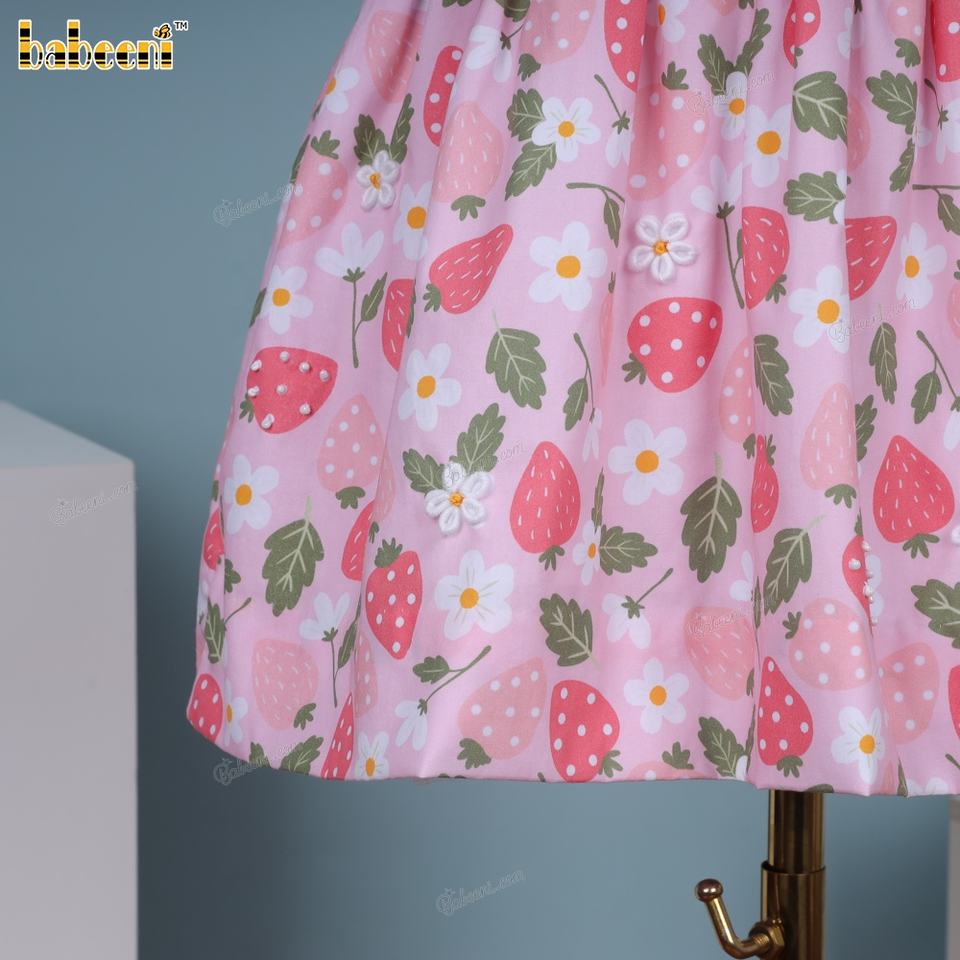 Strawberry Printed Children's 100% Cotton A-Line Dress with Scalloped Hemline and Smocked Collar ODM Winter Dress DR4126