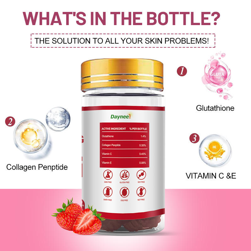 Strawberry Skin Whitening Gummies vitamin Supplement Healthy Herbs Heart Shaped Glow Gluta collagen whitening Gummy Candy