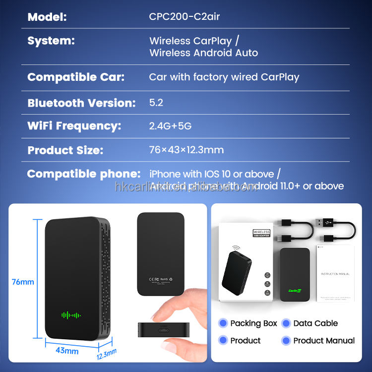 Compatible car model:All car with OEM factory wired carplay/wired Android Auto