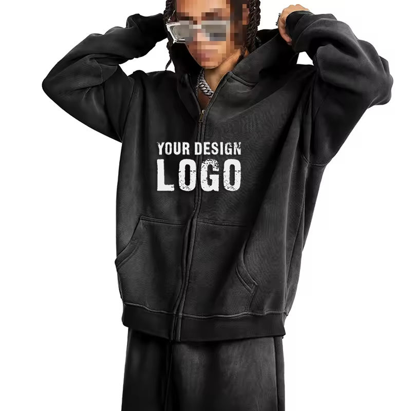 Street Casual Gradient Color Loose Zip Mens Cardigan Hoodies Coat Wholesale OEM Drop Shoulder Zipped Oversized Men's Hoodies