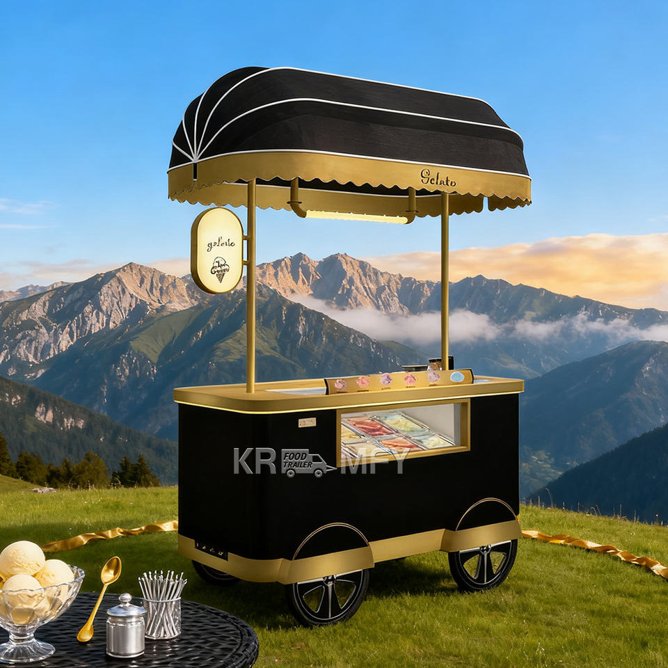 Street Kiosk Case Ice Cream Gelato Display Towable Metal Rust Resistant Fast Food Mobile Food Cart Outdoor