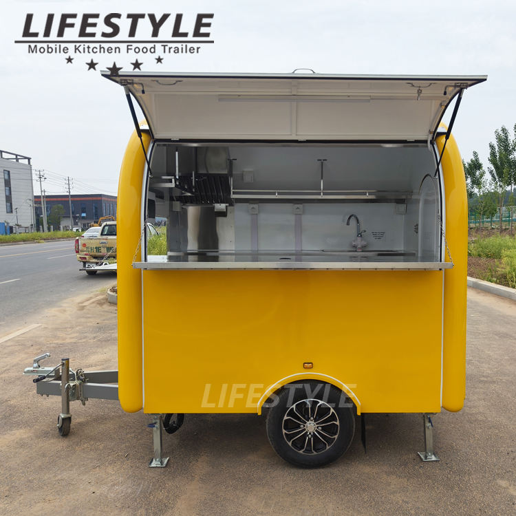 Street Mini Hot Dog Fast Food Cart Ice Cream Fully Equipped Small Round Mobile Donut Burger Coffee Van Trailer for Sale