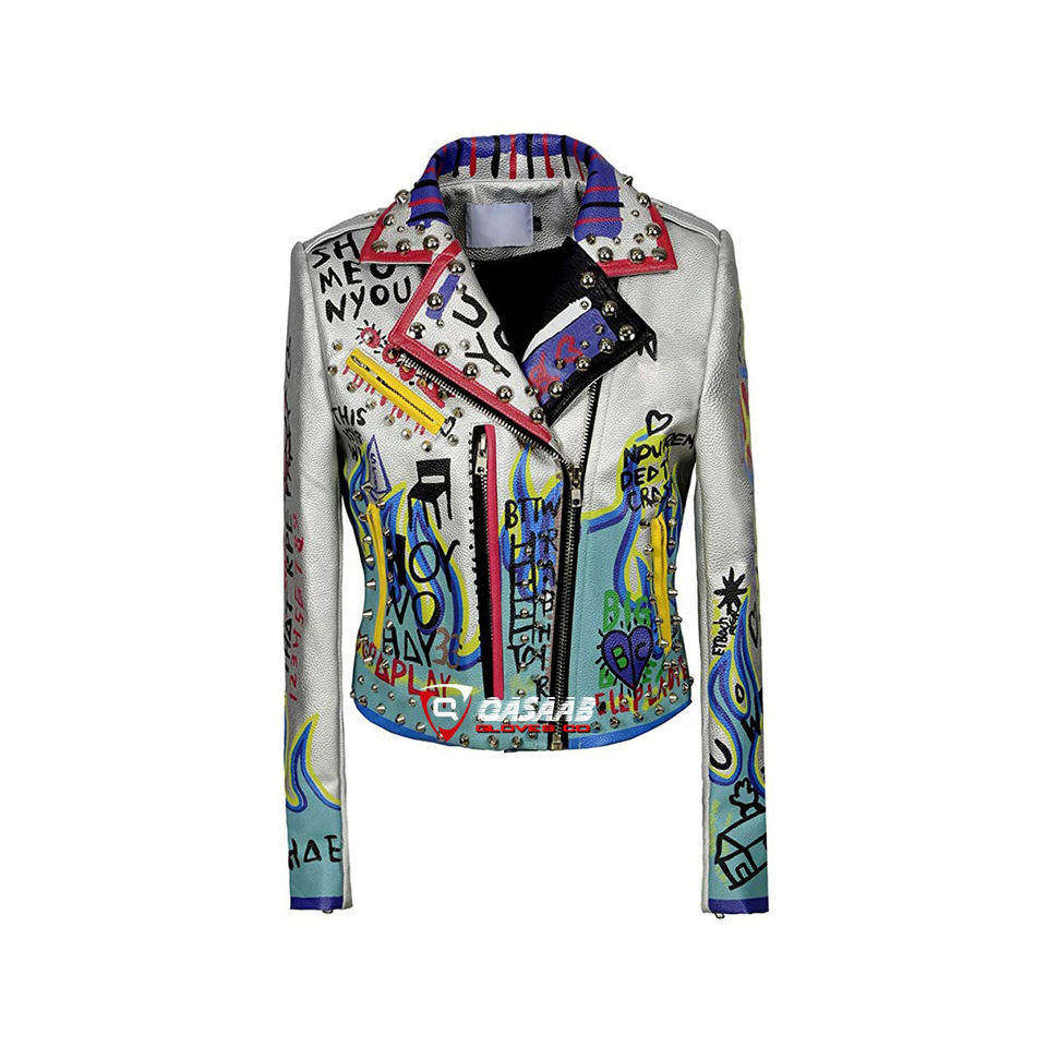 STUDDED GRAFFITI PUNK LEATHER JACKETItem Type