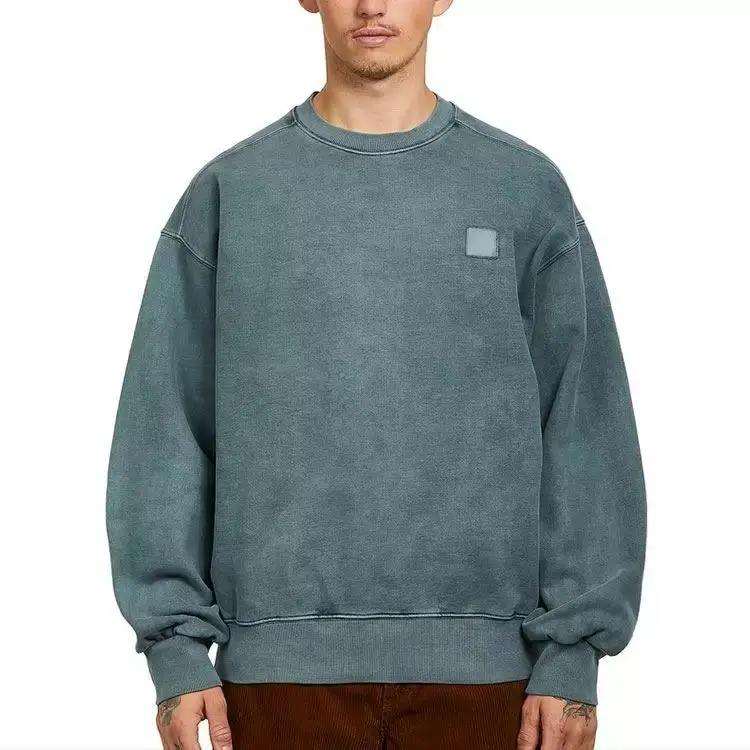 Street Wear Vintage Acid Wash Vintage Crewneck Sweatshirt 100%Cotton Blank Embroidered Log for Crewneck Sweatshirts