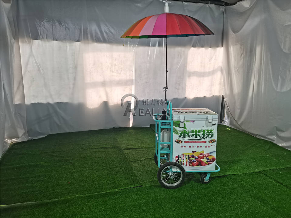 Street Wheeled Ice Cream Fruit Trolley Portable Mobile Ice Drink Dessert Display Cabinet Refrigerated Cart