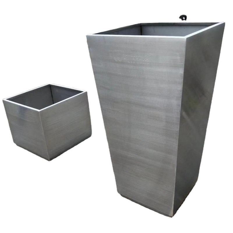 Street square Stainless Steel Vase Garden Custom Size Brushed Stainless Flower Trough