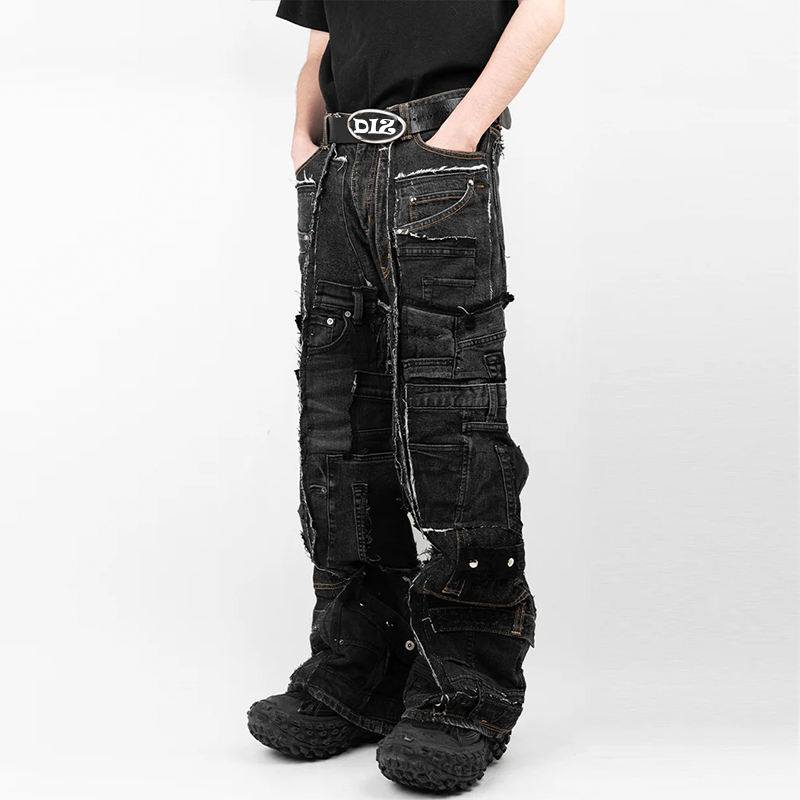 StreetLux Custom American y2k high street heavy washing black hole cargo jeans men's autumn and winter explosion multi-pocket