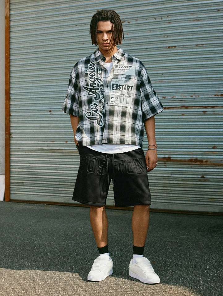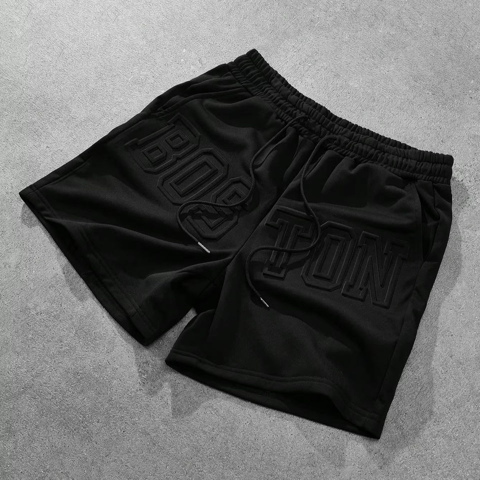 Streetrush Men's Minimalist Drawstring Shorts with Large Font Letter Embossed Elastic Waist Closure Street Style