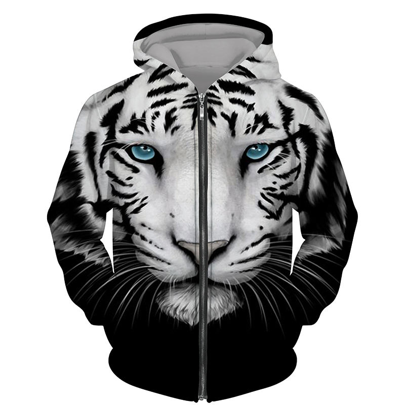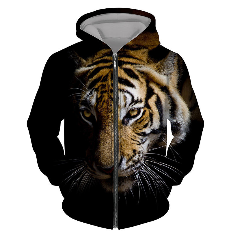 Streetwear 3d Tiger Printed Hooded Sweatshirt Sport Coat Pullover Fashion Long Sleeve Oversized Hoodie Jacket Zip Men's Hoodies