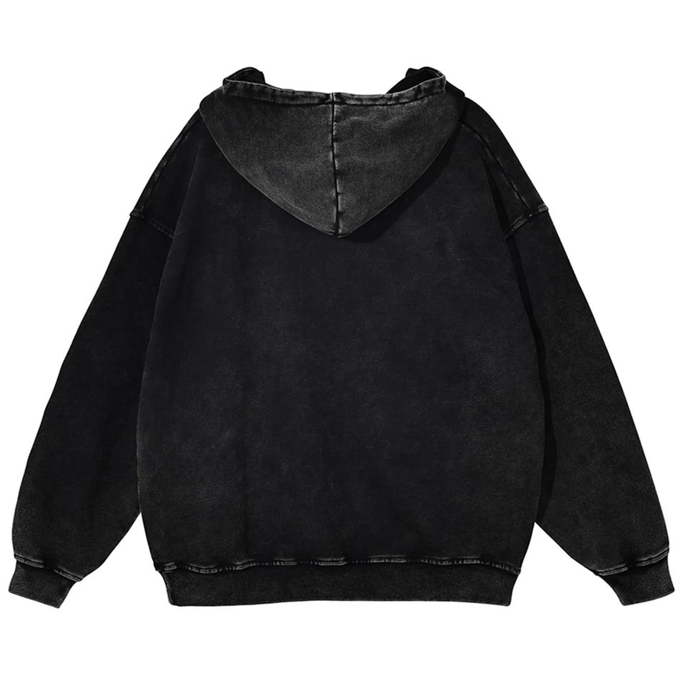 Streetwear Acid Wash Hoodies French Terry Rhinestone Sun Faded Acid Wash Distressed Patch Embroidery Cropped Zip up Hoodie