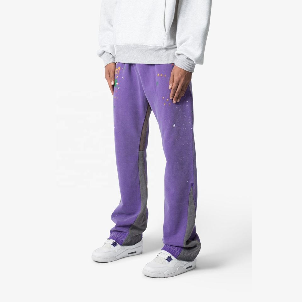 Wholesale Men's Mid Waist Baggy Sweatpants High Streetwear Heavy Weight Oversized Wide Leg Painted Casual Stacked Trouser