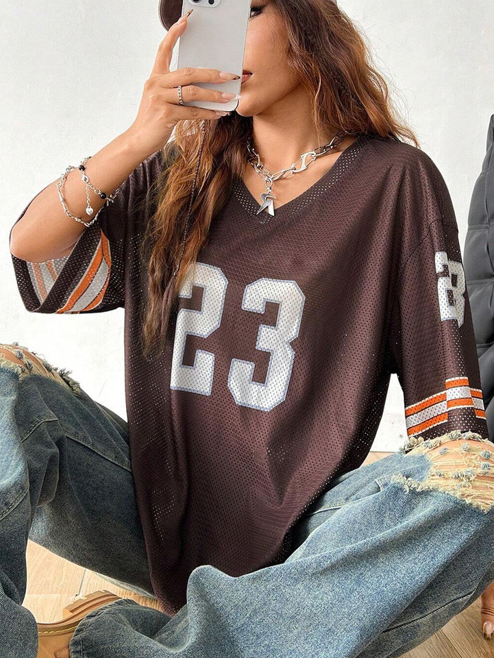 Streetwear Boxy Fit Mesh Baggy Jersey T Shirts Drop Shoulder V-Neck Baseball Mesh Top Ladies 100% Polyester V-Neck Jersey