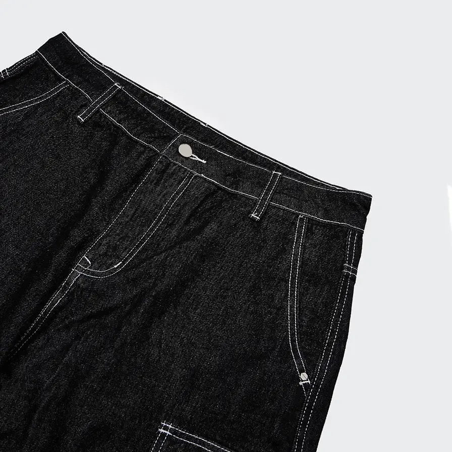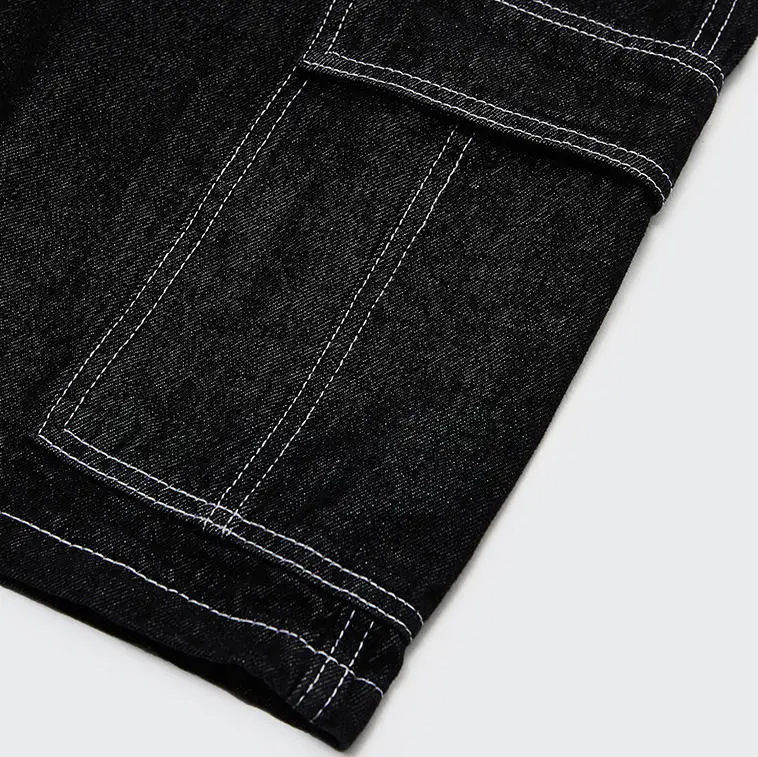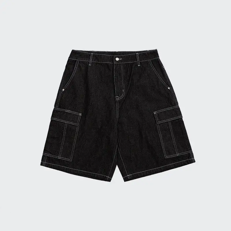 Streetwear Casual Blank Loose Men's Straight Denim Shorts Custom Logo Embroidery Crystal Contrast Stitching Solid Vintage Hiphop