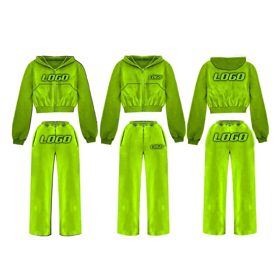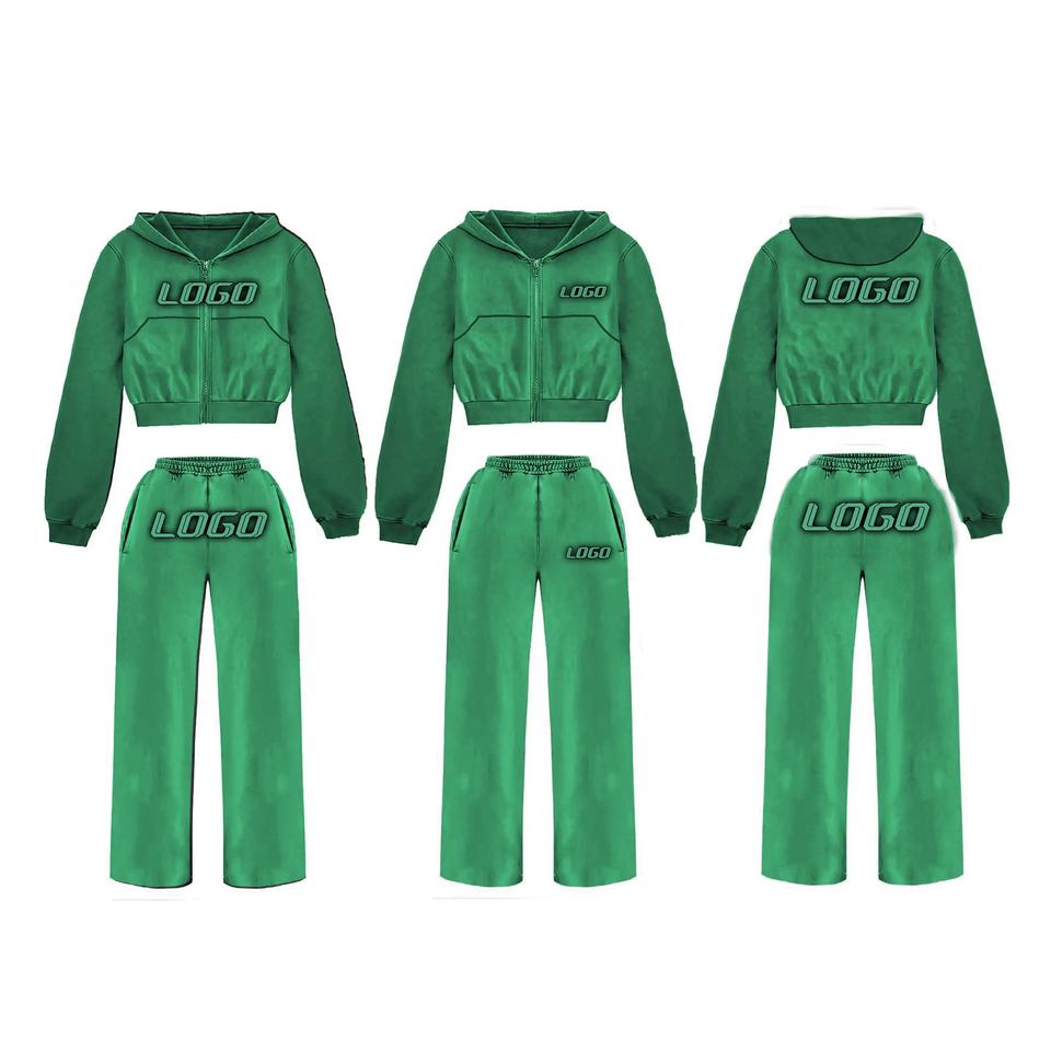 Streetwear Casual Outdoor Fashion Cropped Hoodie and Flared Jogger Set for Women Custom Logo Winter Stylish Hip Hop Women's Sets